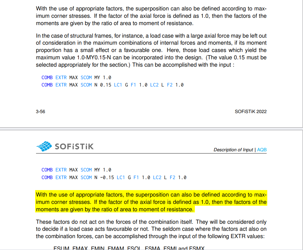 bei der Spannungsermittlung im Querschnitt habe ich zwei unabhängige Einwirkungen. Einwirkung J02 erzeugt für den auszuwertenden Spannungspunkt die maßgebende Spannung für die minimale Normalkraft (Speicherlastfall 80502 bzw. 80507). Die Einwirkung J03 erzeugt für diesen Spannungspunkt die maßgebende Spannung für das maximale Biegemoment (Speicherlastfall 80513 bzw. 80517). Bei der kombinierten Betrachtung beider Einwirkungen kann ich jedoch nur eine Zielschnittgröße angeben. Entsprechend erhalte ich nicht die maßgebende Spannung. Wie ist es möglich, die beiden maßgebenden Spannungen aufzusummieren?