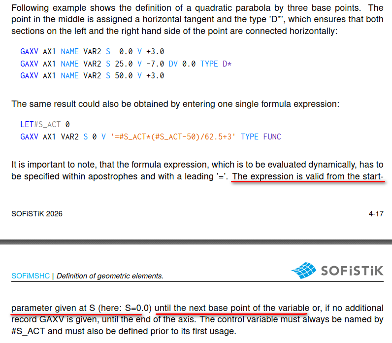 I’ve had a quick look and your conclusion seems to be correct. A simple workaround would be to define your desired variable expression code manually in the CADINP format in the GH panel and just plug it to the SOFIMSHC component “User” input. Or evaluate your expression along the axis to obtain a list of H and V offsets and approximate it with a PT Geometry component. Hope it helps!