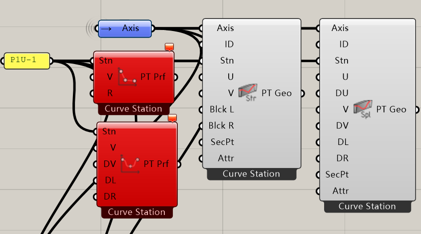 In grasshopper, the station input of “PT Geometry | Straight” and “PT Geometry | Spline” accept placement (P1U-1 in this case), while “PT Profile | Polygon” and