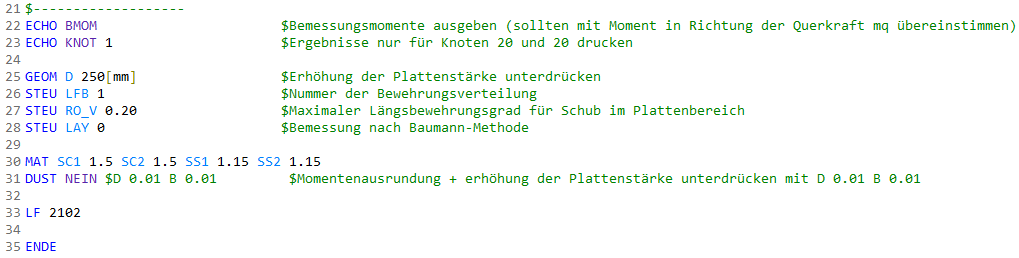 Mit GEOM D … bin ich zwar in der Lage auf eine Erhöhung der Plattendicke zu verzichten und gleichzeitig eine Momentenausrundung anzusetzen, allerdings bezieht sich dies immer auf das ganze System. Eine Grupenauswahl mit GRUP war hier erfolglos.