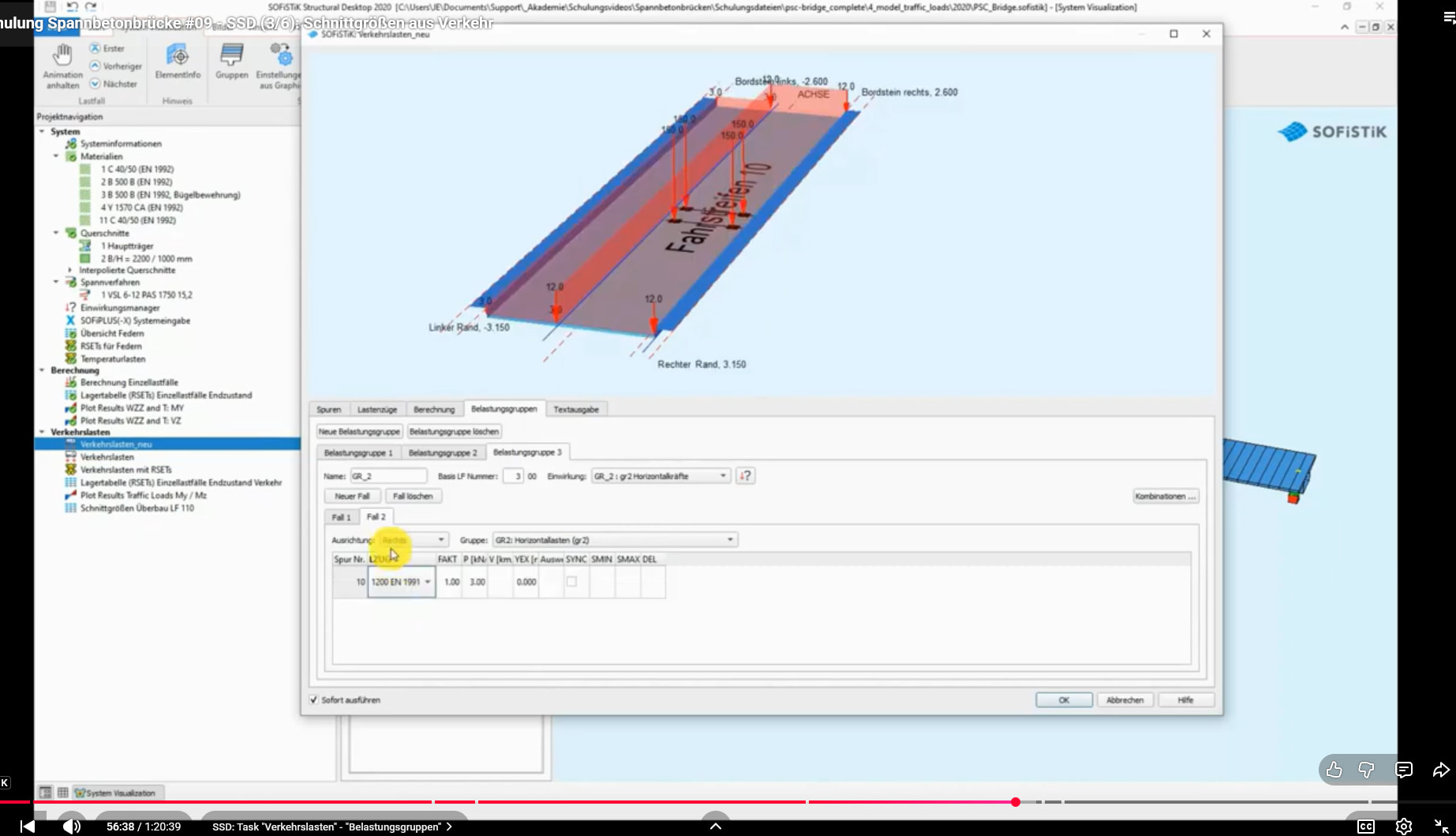 ich arbeite derzeit an einem Brückenprojekt und modelliere die Verkehrslast nach LM1.