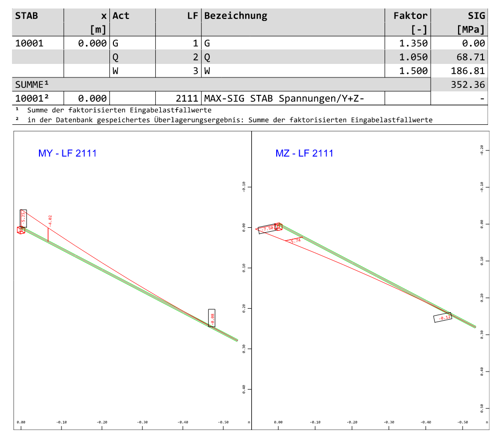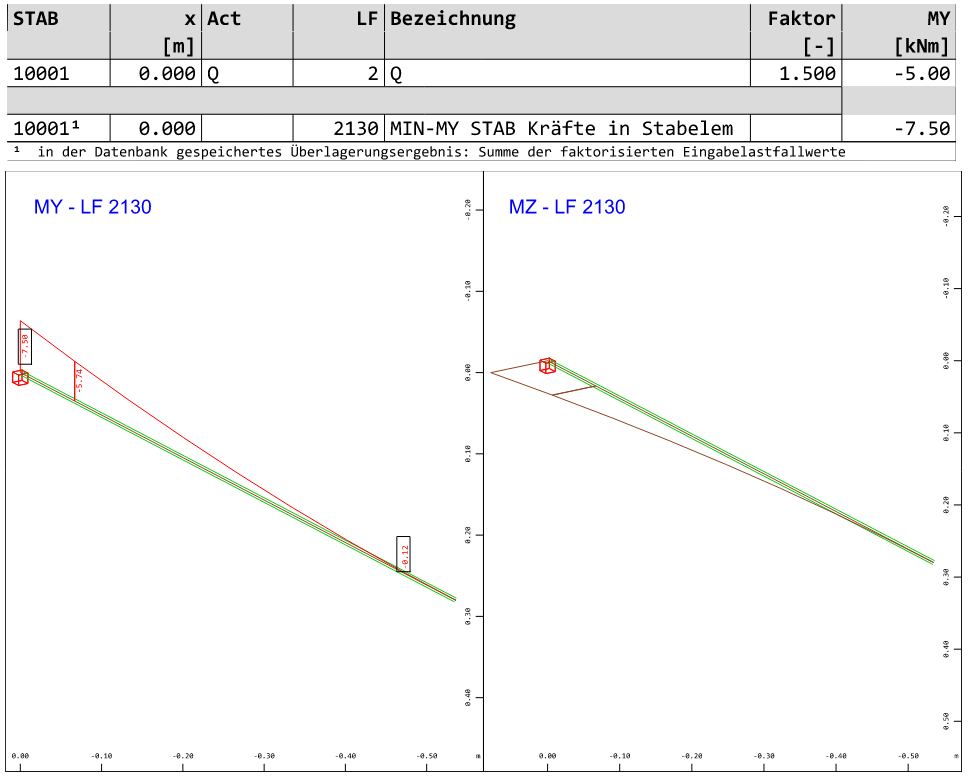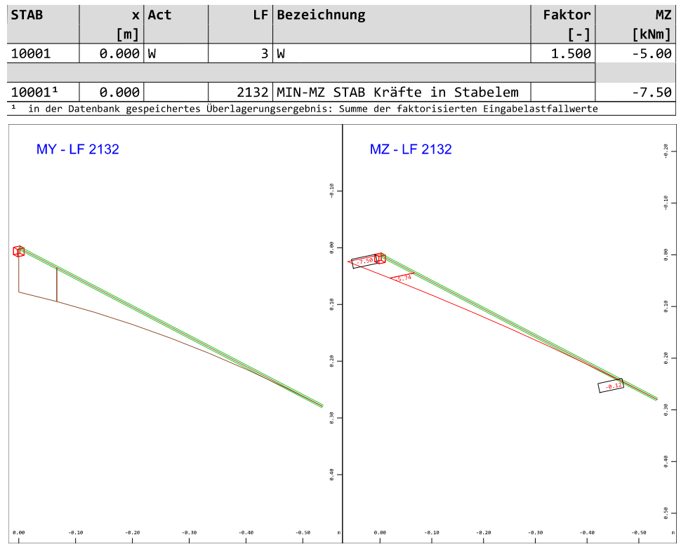 die Einzelschnittgrößen min My und min Mz werden vom Programm korrekt ermittelt. Allerdings behandelt das Programm die Lastfälle so, dass sie nicht gemeinsam auftreten können