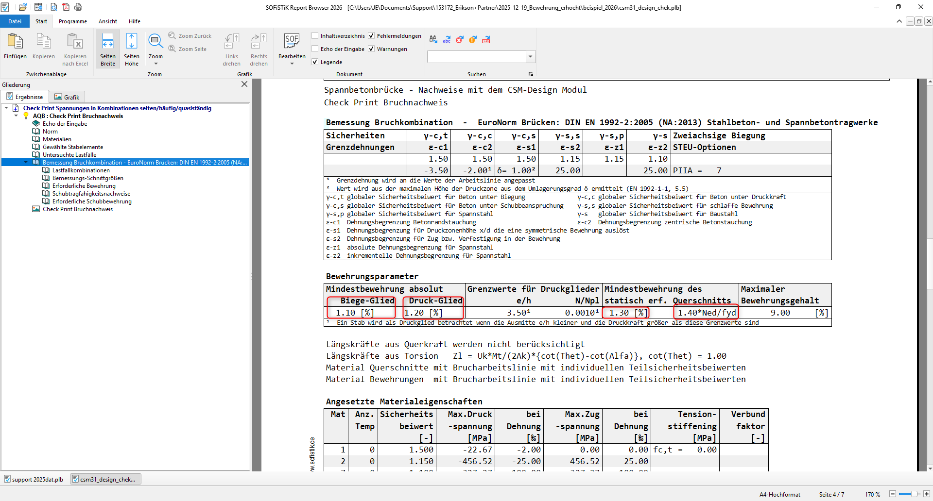 Für die Querschnitte habe ich die vorhandene Bewehrung definiert. Ich wüsste jedoch gerne, ob Sofistik mir zusätzlich die rechnerisch erforderliche Mindestbewehrung anzeigen kann – unabhängig von meinen eigenen Eingabewerten. Ist das mit aqb möglich, oder muss ich einen anderen Weg gehen?
