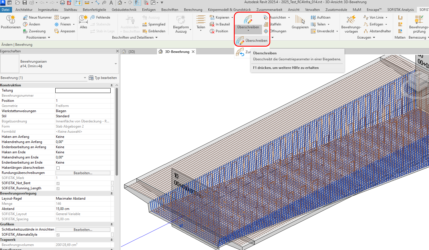 I model the rebar using Free Form tool in Revit and I have to adjust the rebar sets and positions according to stations of the bridge deck (so the variable segments go from highest to lowest value)