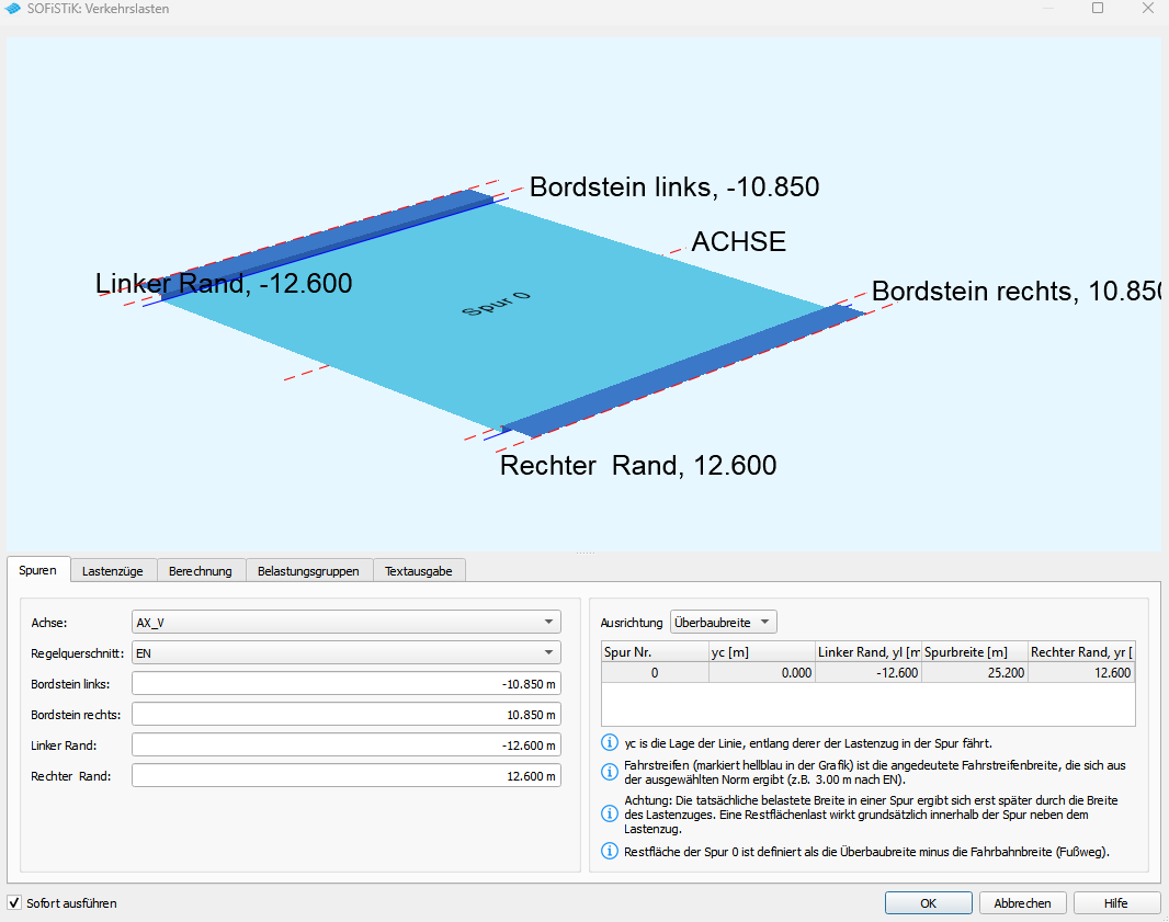 Die Verkehrslasten werden in SOFiLOAD definiert und anschließend in das FE-Modell übernommen (keine Verwendung von ELLA).