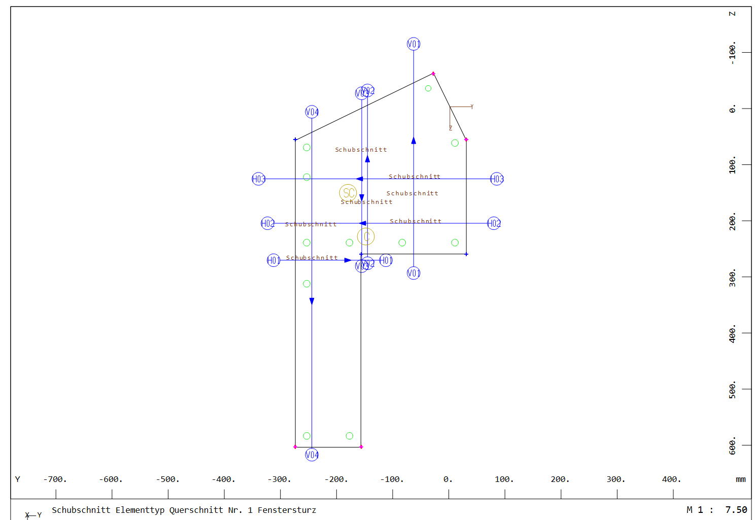 - Für einen vertikalen Schubschnitt analog Haken bei ‚Y im Schwerpunkt – vertikaler Schnitt‘ (AQUA QS … YA S + Z Koordinaten)