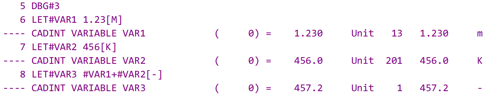 let#var3 #var1+#var2[-] $ [-] means, that the value is without specification / unit-free